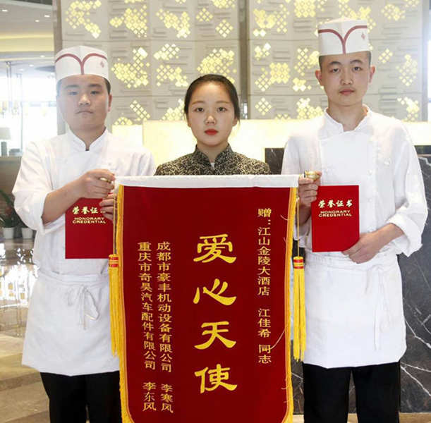 6月17日,江山中专1302班的江佳希因面对倒地老人见义勇为,用实际行动诠释救不救,受到实习单位江山金陵大酒店表彰。 事情还得从6月6日说起,那一天江佳希同学与邓文涛、方琪两位酒店员工经过双塔街道大夫第村路段,见到一位年迈的老人倒在路边绿化带旁,三人见状,立即上前,见老人呼吸困难,情况不容乐观,江佳希同学二话不说立即拨打了120、110进行求救。在炎炎烈日下,江佳希一直撑着遮阳伞为老人做好防暑措施,尽自己所能给予老人最大限度的保护,直到等到救护车赶来,警察勘察过现场之后,江佳希同学才与两位酒店员工悄然离开。 事后,江佳希同学没有向人说起这件事情。直到6月13日,老人的家属找到了酒店,向酒店说明了这件事情的来龙去脉,送上了锦旗,还要求见一下这个有爱的江山小姑娘。家属与江佳希同学见面之后,告知江佳希老人最终因抢救无效去世,但万分感谢江佳希同学在老人最后一程的温暖陪伴。听到老人去世的消息,江佳希的心情怎么也高兴不起来。 6月17日下午,江山金陵大酒店就该事迹为江佳希同学及另外两位员工召开了表彰大会,通报表彰见义勇为事迹,并予以了奖励,呼吁酒店全体员工要以他们为榜样,助人为乐、见义勇为,弘扬社会正气。学校领导听闻此事后,也专门参加了表彰大会。 据悉,江佳希同学是江山中专3+2大专班的一位学生,目前在江山金陵大酒店实习,即将毕业,在今年九月即将升入湖职院继续学习深造。(郑江林、祝小刚)