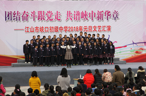 12月27日,峡口初中举行以“团结奋斗跟党走共谱峡中新华章”为主题的2018元旦文艺汇演,30个班级25个节目参加演出,师生家长1500多人观看了演出。