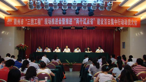 7月29日,衢州市“三团工程”现场推进会暨进行“两个试点省”建设百日集中行动动员大会在我市天蓬公司举行。团省委副书记苗伟伦、团衢州市委书记童炜鑫、市委副书记赖瑞洪、团江山市委书记周群丽及衢州各县(市、区)、乡镇(街道)团委负责人等130多人参加了会议。会议由衢州团市委副书记徐建芬主持,市委赖书记致欢迎辞。